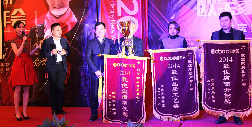 苏州公司五金部获得2014年最佳业绩增长奖 ,南京公司获得2014年最佳品质工艺奖,苏州公司获得2014年最佳店面开拓奖